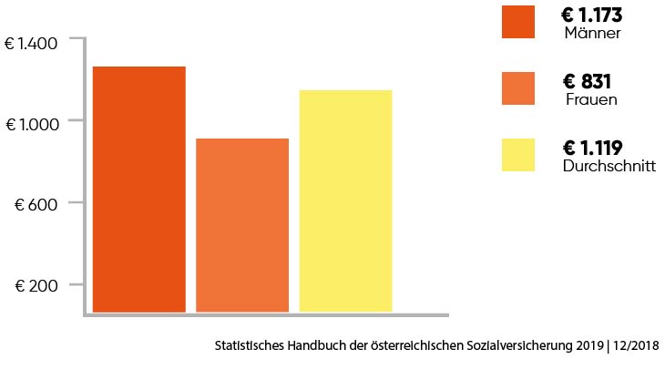 In der Regel bekommt man vom Staat im Falle der Berufsunfähigkeit nur ca. 50% seines letzten Einkommens. Im Durchschnitt liegt die staatliche BU-Pension bei Männern bei 1173€ und Frauen 831€ im Monat.