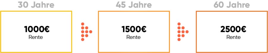 Deine Rente wächst ca. mit der Inflation mit. Solltest du mit 30 Jahren bereits aus dem Berufsleben ausfallen und 1000€ Rente beziehen, würde deine Rente auf knapp 2500€ bis zu deinem 60 Lebensjahr ansteigen. Somit bist du auch vor der Inflation bestens geschützt. (Annahme: 3% Leistungsdynamik, gerundete Werte.)